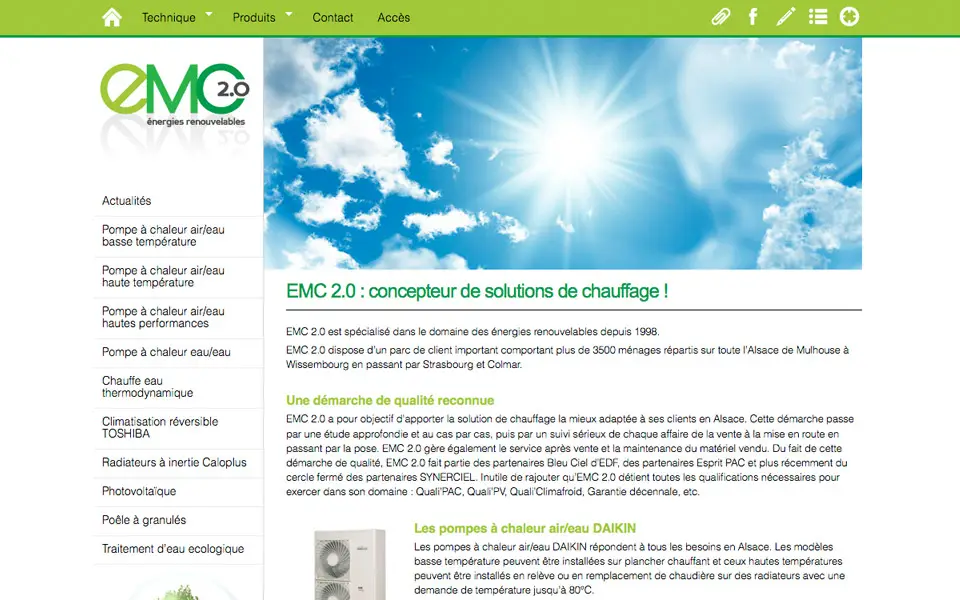 Accueil CMS emc-energie.com emc-energie.com 23 Oct 2011CMS, Web Octobre 2011 : mise en place de emc-energie.com Solutions chauffage et climatisation en énergies renouvelables Site dynamique avec gestion de contenu Article précédent cerf-dor-strasbourg.fr Article suivant jacquesdemeter.fr
