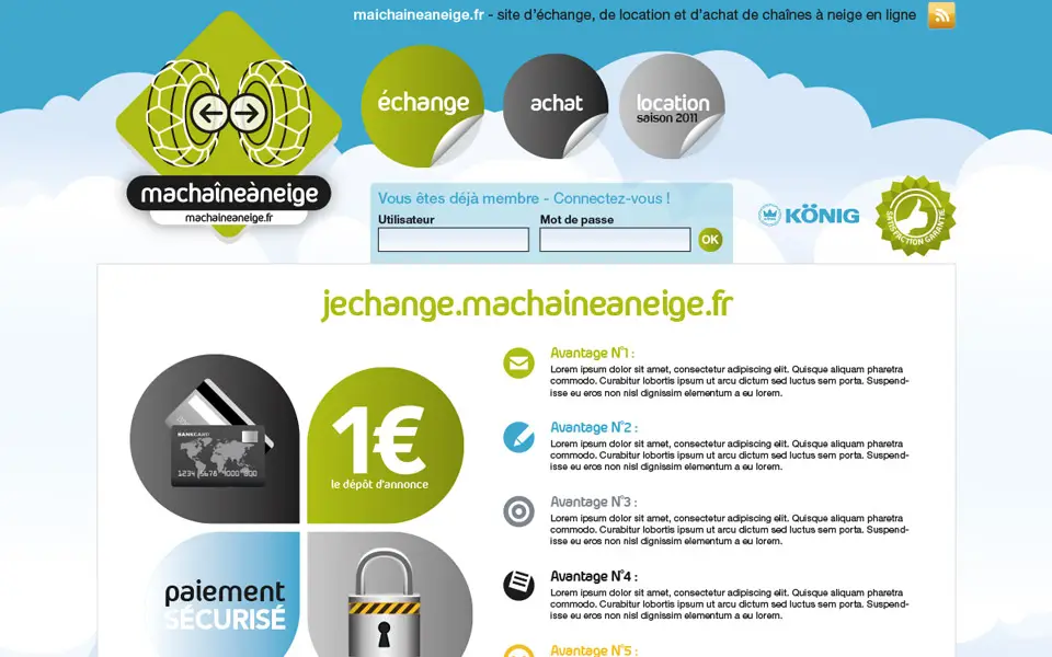 Décembre 2011 : maquette graphique du site e-commerce d’achat et d’échange de chaînes à neige machaineaneige.fr, en collaboration avec ineolab.fr