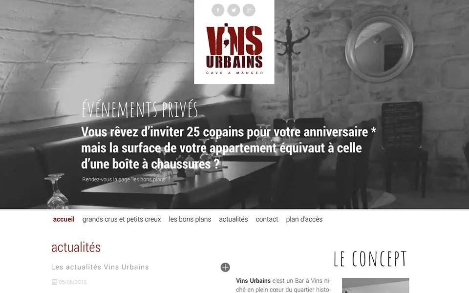 Accueil CMS vinsurbains.fr vinsurbains.fr 2 Juil 2015CMS, Web Création du site internet dynamique avec gestion de contenu vinsurbains.fr Site en responsive design Article précédent nouvelle page d'accueil jerenove.com Article suivant oliger.com v2